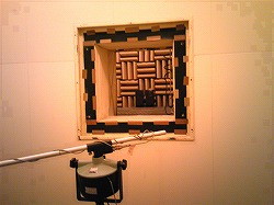 残響室と無響室の間の仕切りに「はりつけ」にされた「ソフト音」の姿です ^^